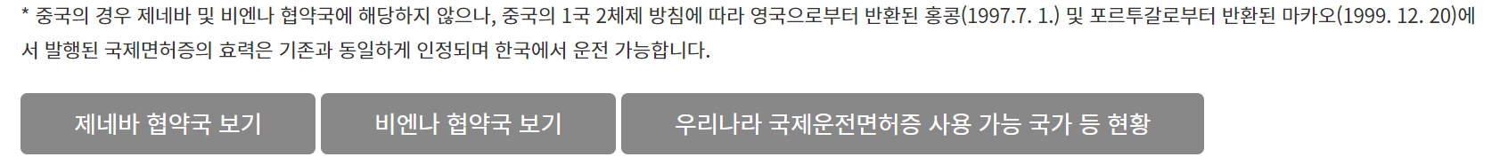 대한민국과 협약을 맺은 국가에서만 국제운전면허증을 사용할 수 있습니다. 제네바 협약국, 비엔나 협약국, 우리나라 국제운전면허증 사용가능 국가 등 현황은 아래를 누르셔서 확인해보세요.