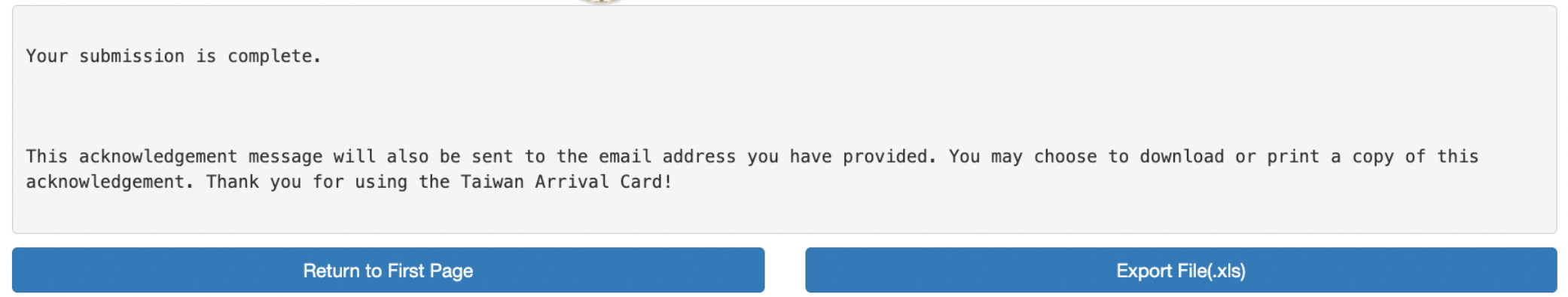 온라인 입국신고서 등록이 완료되면 따로 출력하지 않아도 됩니다. 본인이 작성한 온라인 입국신고서는 이메일로 받게 됩니다. 대만 입국할 때 스크린 캡쳐를 해두어 입국심사 시에 요청한 경우에 보여줍니다.
