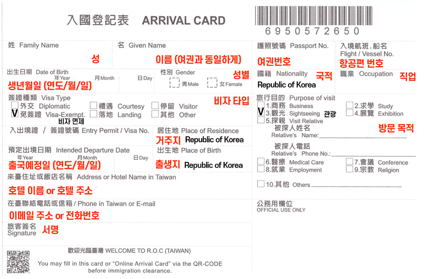 - 대만 입국 시 마다 온라인 입국신고서를 반드시 작성하고 제출해야 합니다.