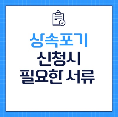 상속포기는 상속 개시를 알게 된 날로부터 3개월 안에 가정법원에 신청해야 합니다. 상속포기 신청시에 필요한 서류는 상속인의 관계, 재산 종류, 재산 소재지 등에 따라 달라질 수 있기 때문에 상속포기 신청 전에 가정법원에 연락을 취해서 서류를 확인해보시기 바랍니다.