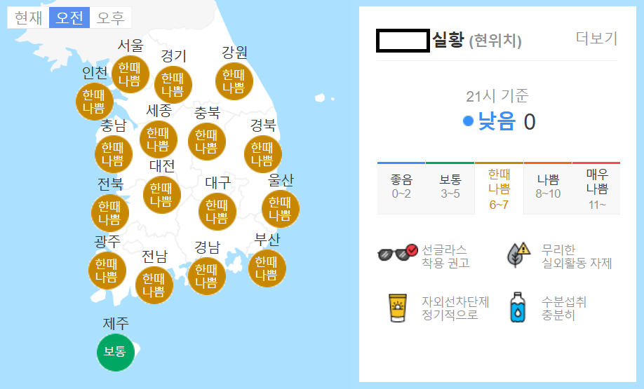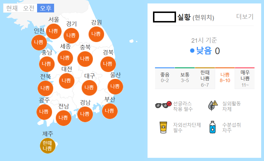 수도권, 특히 서울은 인구 밀도와 건물 반사광 등의 영향으로 서울 자외선 지수가 높은 편입니다. 7월 10일 기준 서울의 자외선 지수는 '매우 높음' 단계로, 야외활동 시 30분 이상 노출되면 피부에 화상을 입을 수 있는 수준입니다. 서울은 여름뿐 아니라 봄철, 가을철에도 맑은 날씨가 지속되면 자외선 지수가 높게 나타나는 경우가 많습니다. 기상청 홈페이지나 날씨 애플리케이션을 통해 매일 오늘 자외선 지수를 확인하고 그에 맞는 피부 보호 조치를 취하는 것이 중요합니다.