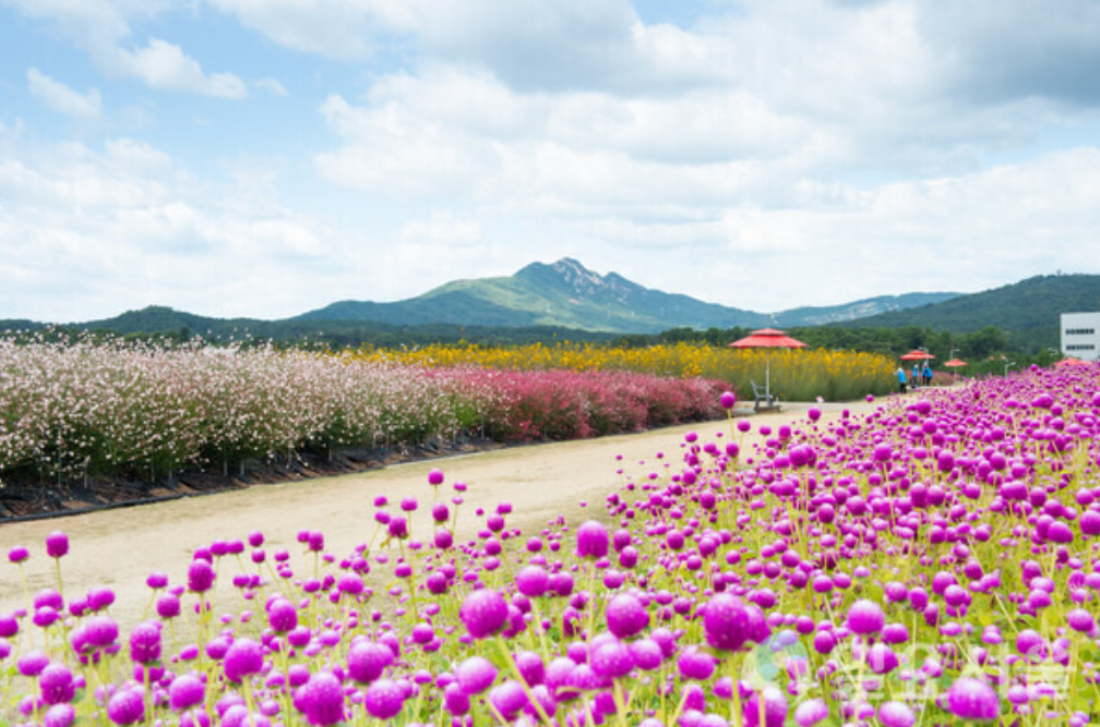 대표적인 천일홍 축제이므로 천일홍 군락지를 볼 수 있습니다. 2024년에는 천일홍 외에도 핑크뮬리, 댑싸리, 가우라, 칸나 등 50여종의 꽃들을 감상하실 수 있습니다.