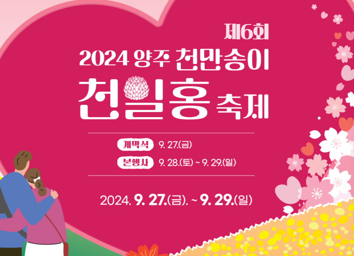 전국 최대 규모의 천일홍 꽃밭을 감상할 수 있는 특별한 기회입니다. 천일홍 외에도 핑크뮬리, 댑싸리 등 50여 종의 다양한 꽃들이 조화롭게 어우러진 아름다운 경관은 힐링의 시간을 선사합니다. 축제 기간 동안 특색 있는 체험 프로그램과 판매 붓, 재능 있는 버스킹 공연이 열려 즐거움을 더하며, 나리공원과 양주2동 시가지를 중심으로 경관조명과 공개방송, 패션쇼 등 다양한 부대행사가 함께 진행되어 풍성한 볼거리와 즐길거리를 제공합니다. (올해 축제는 변동 있을 수 있습니다.)