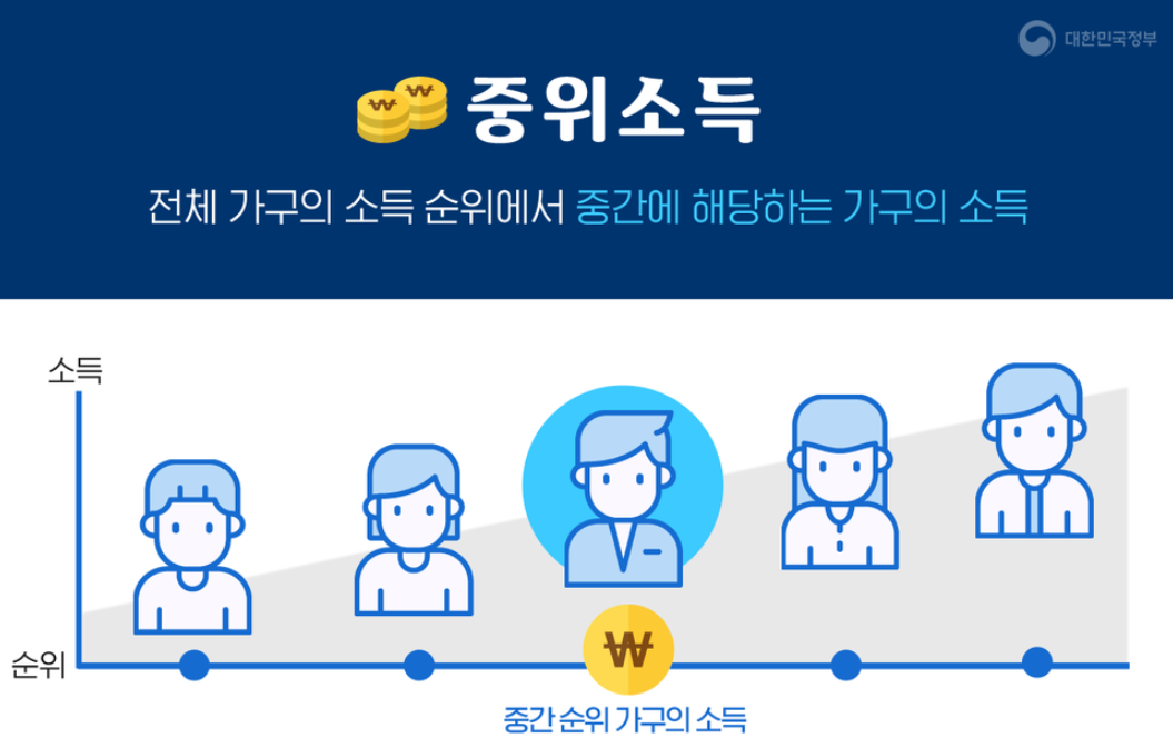 2025년 기준 중위소득은 전국 가구의 소득을 기준으로 한 중간값을 의미합니다. 모든 가구를 소득순으로 나열했을 때 정확히 가운데 위치한 가구의 소득이 중위소득입니다. 이 중위소득은 매년 통계청과 보건복지부에서 발표하는데, 이는 사회보장 제도를 비롯한 여러 복지 정책의 기준이 됩니다.
